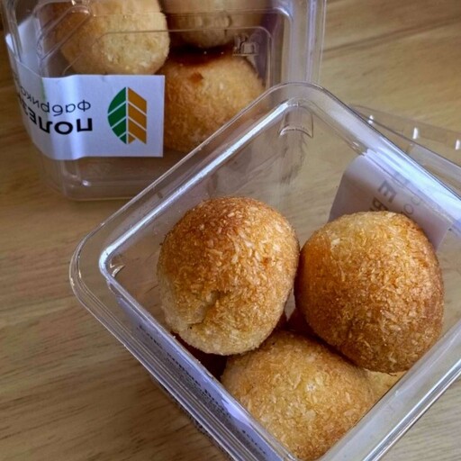 Кокосовые болы без глютена. Состав: яйцо, кокосовая стружка, тростниковый сахар, сухое молоко, миндаль. Пищевая ценность на 100 гр: Б 10,3/ Ж 24,3/ У 24,8 Калорийность: 353,7 ккал/100гр